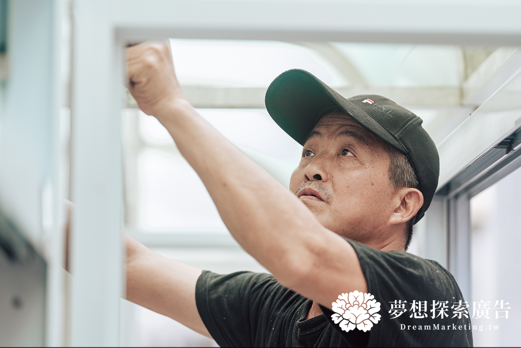 從職人認真施工的神情,到鋁門窗產品細膩的質感,每一個細節都被精準捕捉下來,轉換成具強烈說服力的視覺素材,為品牌的專業性與服務態度背書。​