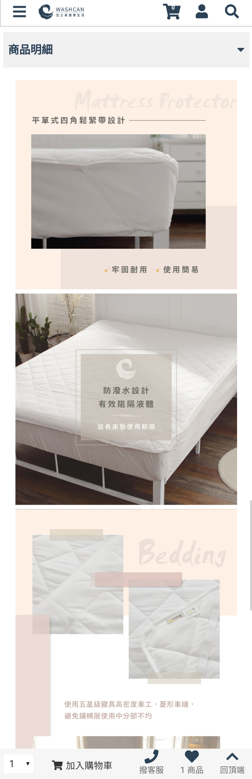 在新製作的產品頁中能特別說明,目的希望能引導潛在消費者認知「瓦士肯雖然是後發寢具品牌,在工廠規模、品管品質上均有一定保證」。