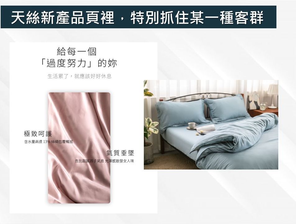 ▼下圖:為新品天絲打造一種全新的生活型態結合:「給每一個『過度努力』的妳,生活累了就該好好休息→點擊連結立即看